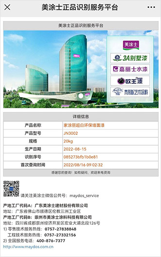 識(shí)別后系統(tǒng)自動(dòng)跳到“美涂士正品識(shí)別服務(wù)平臺(tái)“(如圖所示)