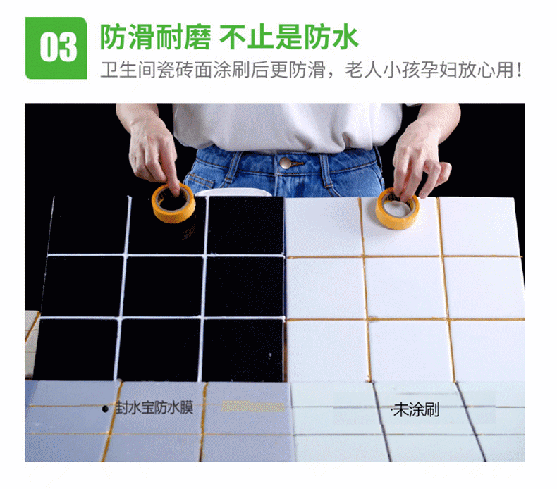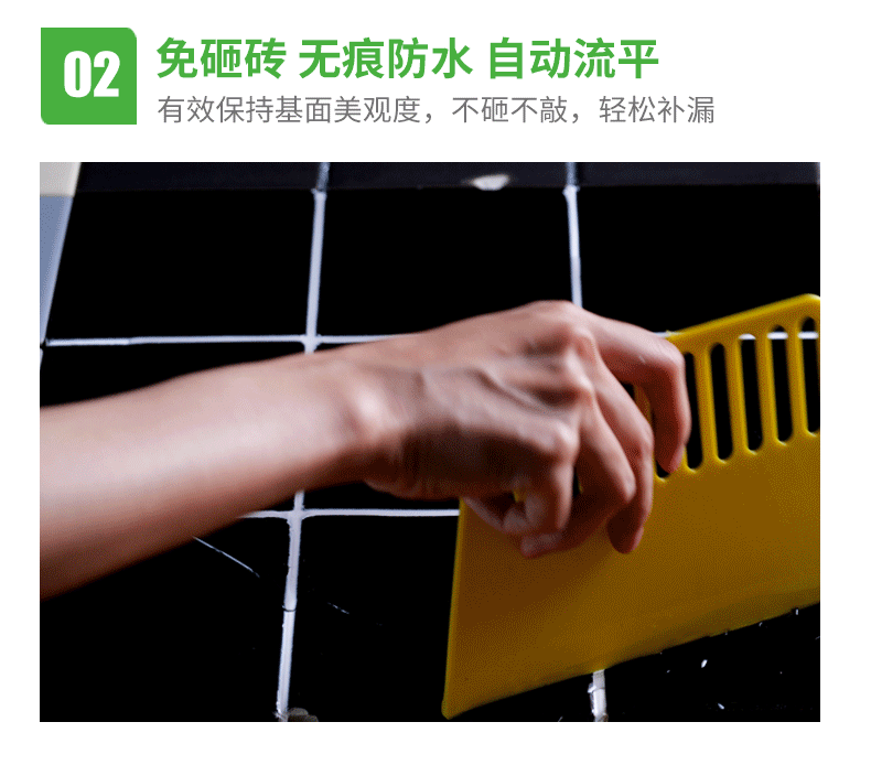 封水寶免砸磚強(qiáng)效耐候防水膜,是以優(yōu)質(zhì)天冬聚脲樹脂、精選助劑、顏填料、固化劑為改性異氰酸脂組成的雙組份產(chǎn)品,混合后產(chǎn)生交聯(lián)反應(yīng)形成高分子透明防水膜,適用于屋頂,水池、廚房、衛(wèi)生間瓷磚表面滲水修復(fù)、內(nèi)墻表面防水防潮處理,讓你重做防水不砸磚,省時(shí)、省工更省錢。